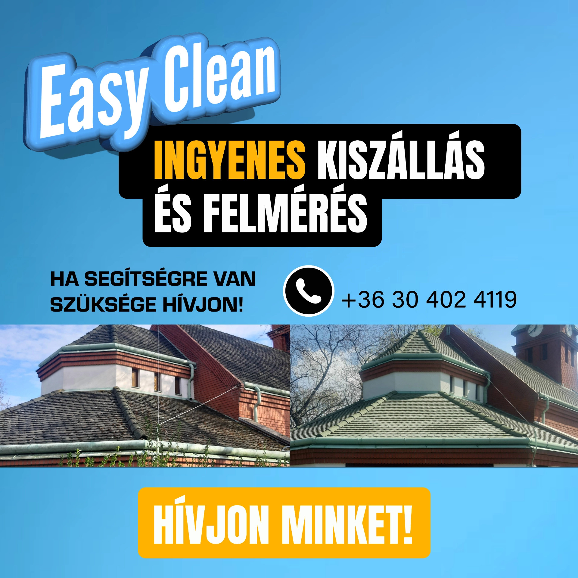 Keressen minket bizalommal, és bízza ránk a tető biztonságos tisztítását, kezelését! Ha bármilyen kérdése van, vegye fel velünk a kapcsolatot, segítünk!